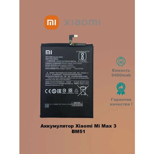 Аккумулятор 3GS Li-Ion, для Xiaomi Mi Max 3 и BM51, 5400 мАч