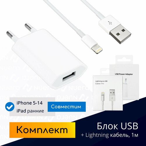 Комплект: зарядка для iPhone, 5 Вт (1А) + кабель USB - Lightning, 1м / Original drop