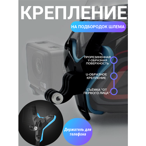 Крепление для экшн камеры на шлем с держателем для телефона / Крепление на подбородок синее