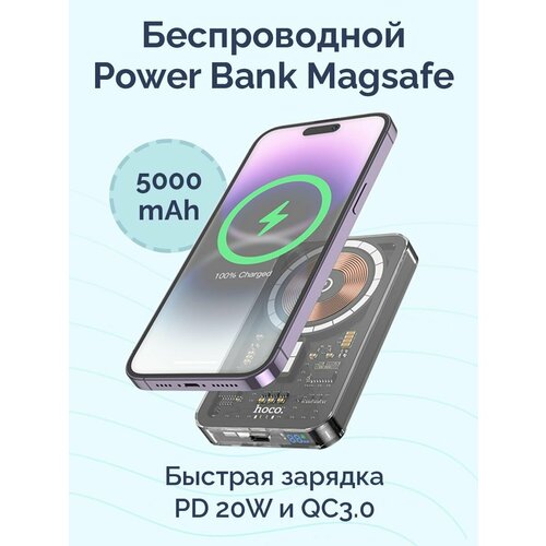 Магнитный Power Bank MagSafe с беспроводной зарядкой QC 3.0 Hoco Q14 5000mAh PD 20W черный