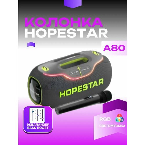 Колонка беспроводная Hopestar A80 с микрофоном, серая