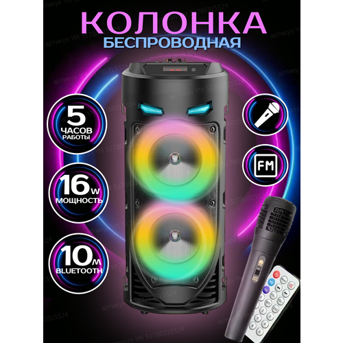 Колонка портативная с bluetooth большая с микрофоном напольная мощная с сабвуфером и радио для караоке