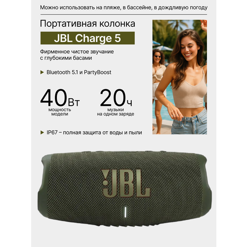 Колонка портативная JBL Charge 5, Bluetooth колонка беспроводная, зеленая