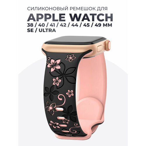 Ремешок для Apple Watch 42 44 45 46 49 мм, Se / Se 2 44 мм, Ultra / Ultra 2 49 mm с 3D рисунком, черный, розовый