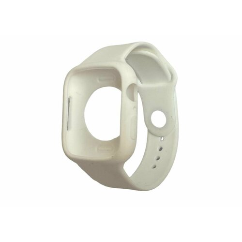 Силиконовый ремешок для смарт-часов Apple Watch 44, 45mm / Защитный чехол на Эпл Вотч / Белый