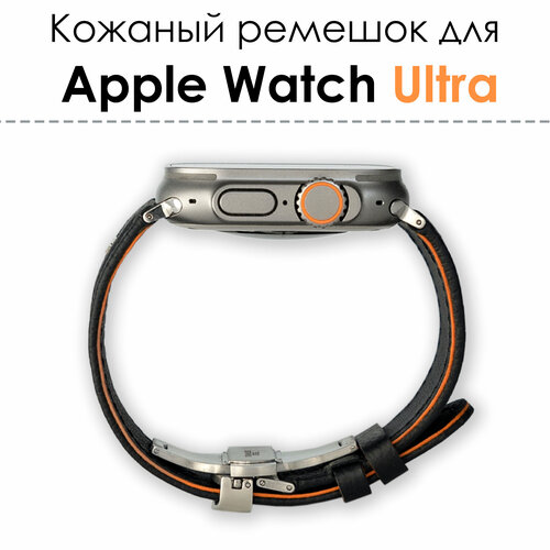 Кожаный ремешок VG для Apple Watch Ultra 49 мм, кожа, черный/оранжевый