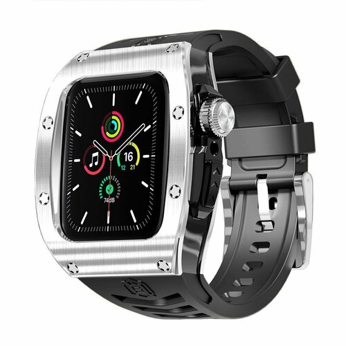 Премиальный ремешок для Apple Watch 44 / 45 mm Стальной в стиле Richard Mille Black/Silver