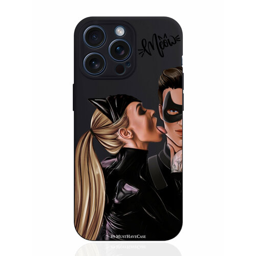 Чехол для смартфона iPhone 15 Pro Max черный силиконовый Кошечка и мишка