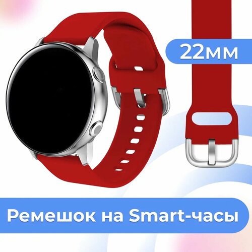 Силиконовый ремешок для часов Samsung Galaxy Watch, Huawei, Honor, Amazfit, Xiaomi, Garmin / 22 mm / Силиконовый браслет с застежкой / Красный