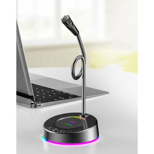 Многофункциональный компактный микрофон с шумоподавлением светящийся MyPads MK08 из прочного пластика для компьютера MyPads