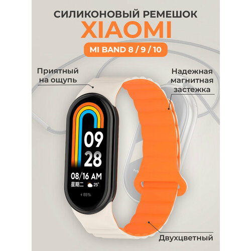 Силиконовый ремешок для Xiaomi Mi Band 8/ 9, с магнитной застежкой, лунно-оранжевый