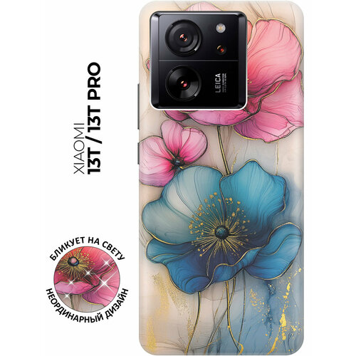 Силиконовый чехол на Xiaomi 13T / 13T Pro с принтом "Голубые и розовые ирисы"