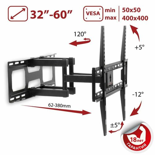 Кронштейн для телевизора и монитора, кронштейн на стену, поворотный, наклонный, выдвижной, крепление VESA, 14 - 60 дюйма