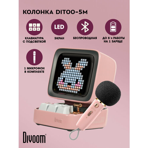 Портативная колонка с микрофоном Divoom Ditoo-5M, розовый, с пиксельным LED экраном