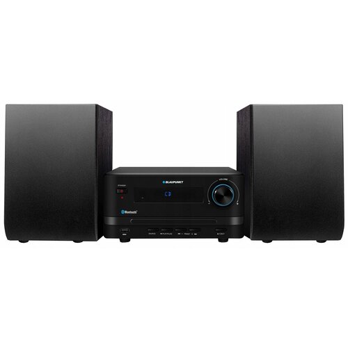 Акустическая система Blaupunkt MS50BT, чёрная, сочетает в себе проигрыватель компакт-дисков, усилитель и радио во встроенном компактном корпусе. Основные характеристики: характеристики:Привод для воспроизведения дисков CD, CD-R и CD-RW. Проигрыватель также читает файлы MP3, хранящиеся на отдельных или перезаписываемых дисках. Встроенный модуль Bluetooth позволяет без проводов воспроизводить музыку с мобильных устройств, таких как смартфоны, планшеты или ноутбуки, оснащённые таким же модулем. FM-радио с цифровым синтезом частоты PLL и памятью на 40 любимых станций. USB-порт на передней панели, к которому можно подключить флешку или переносной диск. Устройство поддерживает носители с максимальной ёмкостью 32 ГБ. Вход AUX рядом с портом USB, благодаря которому к системе можно подключать любые устройства, оснащённые выходом аудиосигнала. Другие особенности: особенности:Светодиодный дисплей показывает порядок воспроизводимых песен, прослушиваемую в данный момент радиостанцию или текущее время. Функциональные кнопк