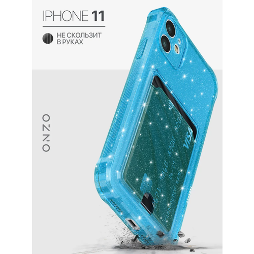 Чехол ONZO "KARTA" для Apple iPhone 11, голубой прозрачный (серебряные блестки)