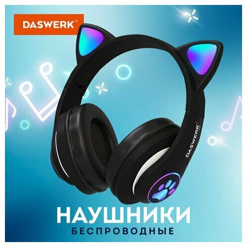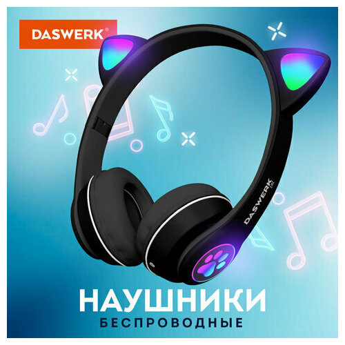 Беспроводные наушники DASWERK с кошачьими ушками и подсветкой - это яркая и надёжная гарнитура. Слушай музыку, аудиокниги, играй!