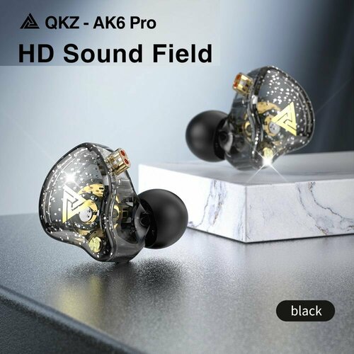 HiFi наушники QKZ AK6 PRO спортивные проводные с микрофоном для телефона вакуумные мощные басы, цвет чёрный