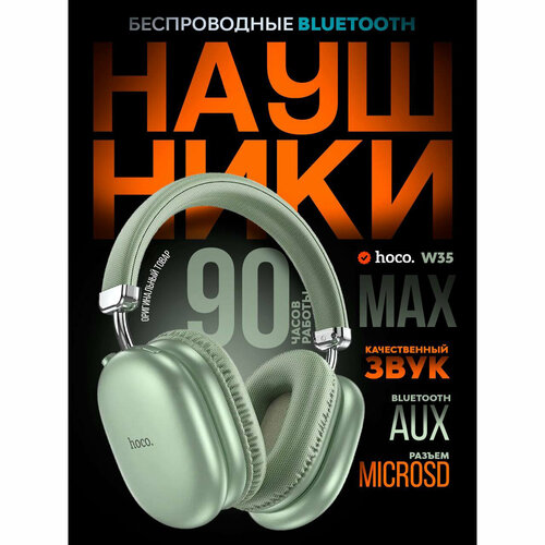 Беспроводные полноразмерные наушники с микрофоном Hoco W35 Max Bluetooth 5.3, цвет Зеленый