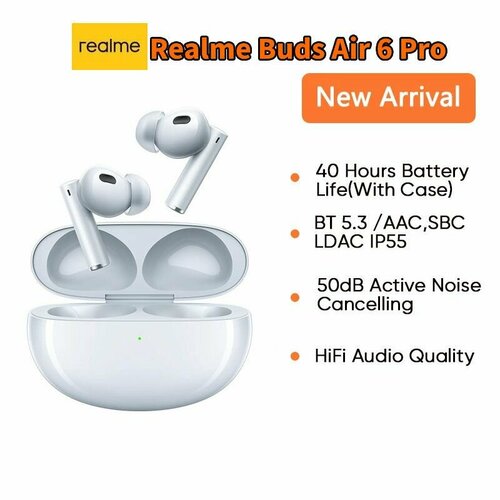 Realme buds air 6 Pro настоящие беспроводные наушники Активное шумоподавление на 50 дБ AAC, SBC, LDAC, IP55