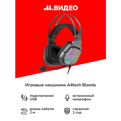 Гарнитура игровая A4TECH Bloody G560, для компьютера, мониторные, проводные, черный / красный [g560 sports red]