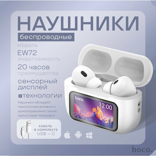 Наушники беспроводные с микрофоном Hoco EW72, шумоподавление ANC+ENC, сенсорный дисплей, белые