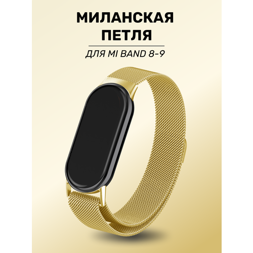 Металлический ремешок для Xiaomi Mi Band 8/9 / Браслет Миланская петля на Ми Бэнд 8/9, Золото