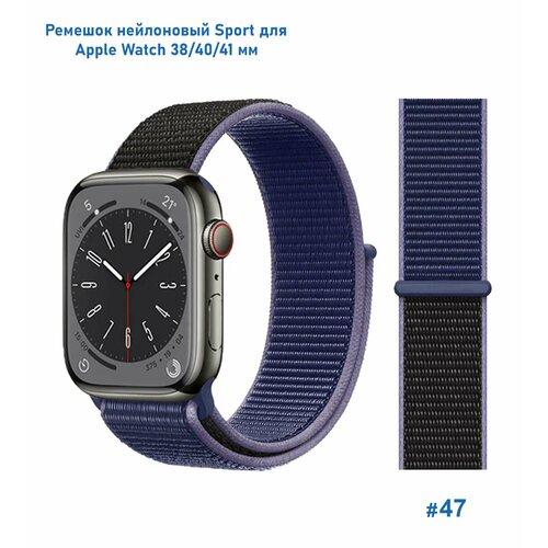 Ремешок нейлоновый Sport для Apple Watch 38/40/41 мм, на липучке, черный+синий (47)