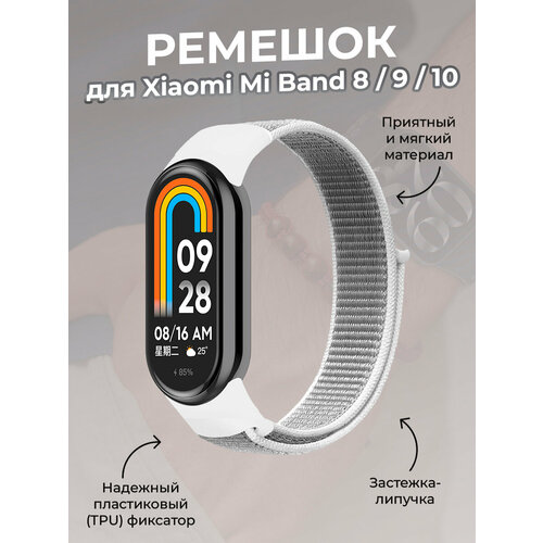 Ремешок с нейлоновой петлей на липучке для Xiaomi Mi Band 8 / 9, серо-белый