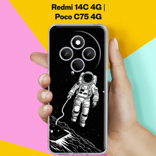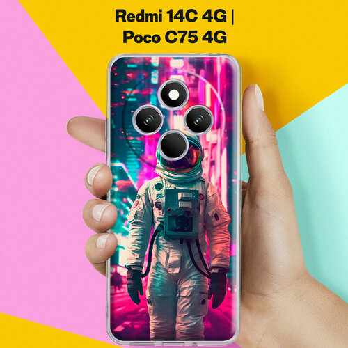 Силиконовый чехол на Xiaomi Redmi 14C 4G / Poco C75 4G с принтом "Космонавт и город" с прозрачными бортиками