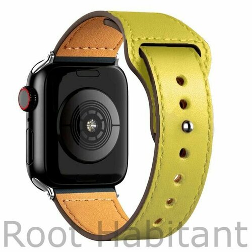 Кожаный ремешок для Apple Watch 3 4 5 6 7 8 9 SE Ultra, в корпусах 38, 40, 41, 42 серия 10. Желтый / Yellow