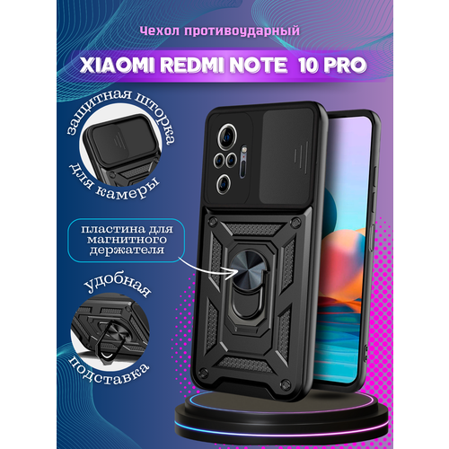 Чехол противоударный для Xiaomi Redmi Note 10 Pro 4G / Редми Нот 10 Про с защитой камеры armors (Черный)