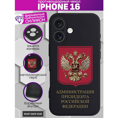 Чехол на iPhone 16 с Золотым металлическим Гербом Администрация президента РФ