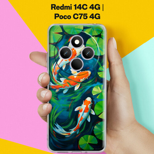 Силиконовый чехол на Xiaomi Redmi 14C 4G / Poco C75 4G с принтом "Карпы" с прозрачными бортиками