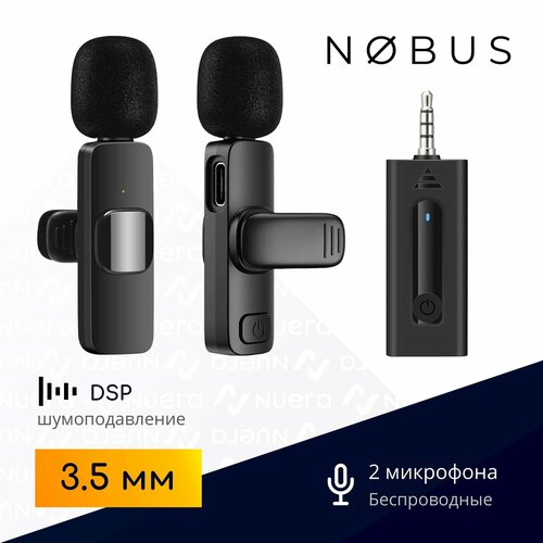 Комплект из 2 беспроводных петличных микрофонов NOBUS K35 duo с интерфейсом 3.5 мм и шумоподавлением, черные