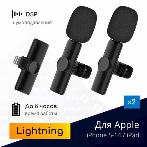 NOBUS K11L duo / 2 беспроводных петличных микрофона для iPhone 5-14 и iPad с разъемом Lightning, черные / комплект