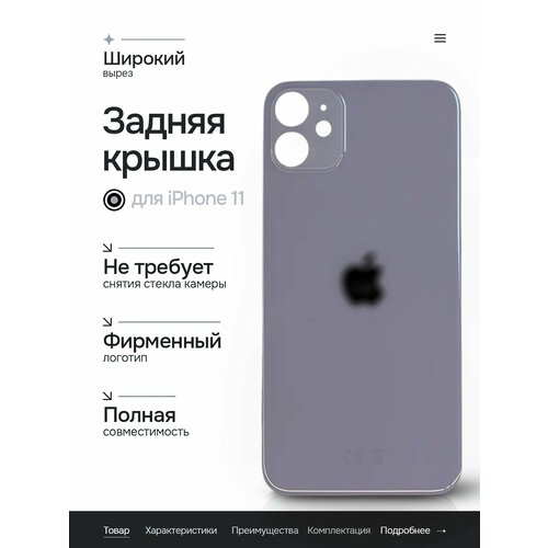 Задняя крышка (стекло) Широкий вырез для iPhone 11 (Purple)