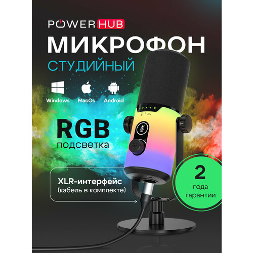 Микрофон студийный конденсаторный для ПК/iPhone/Android с RGB-подсветкой