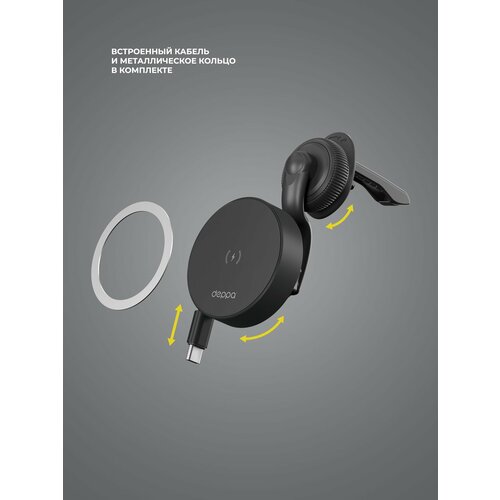 Автомобильный держатель Deppa Magic Cable 2 55213, магнитный, Qi, чёрный