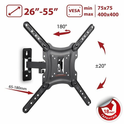 Кронштейн для телевизора настенный наклонно-поворотный Arm Media COBRA-50 26"-65" до 35 кг Cobra-50