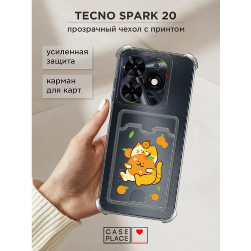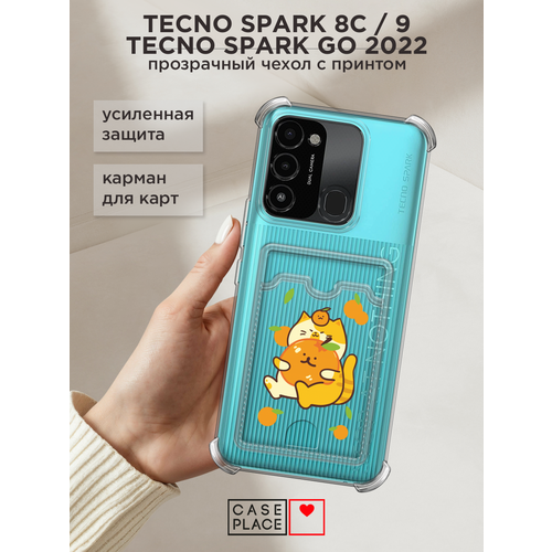 Чехол на Tecno Spark Go 2022/8C/9 (Текно Спарк Го 2022/8C/9) с картой и принтом Корейский оранжевый котик