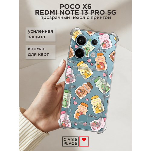 Чехол на Poco X6/Redmi Note 13 Pro 5G (Поко Х6/Сяоми Редми Нот 13 Про 5G) с картой и принтом Динозаврики с напитками