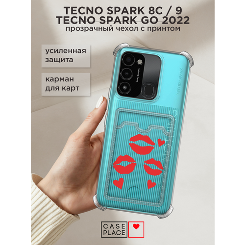 Чехол на Tecno Spark Go 2022/8C/9 (Текно Спарк Го 2022/8C/9) с картой и принтом С поцелуями
