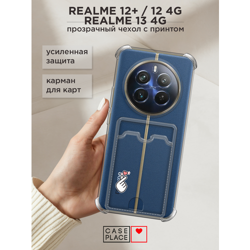 Чехол на Realme 12+/12 4G/13 4G (Реалми 12 Плюс/12 4G/13 4G) с картой и принтом Саранхулька, сердце пальцами