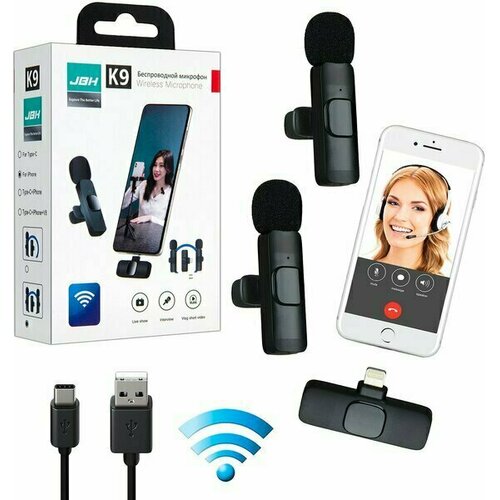 Оригинальная беспроводная радио система JBH K9 из двух микрофонов и приемника для смартфонов c Lightning - IPhone 5s/6s/7/8/X/Xs/11/12/13/14 pro Max/Ipad