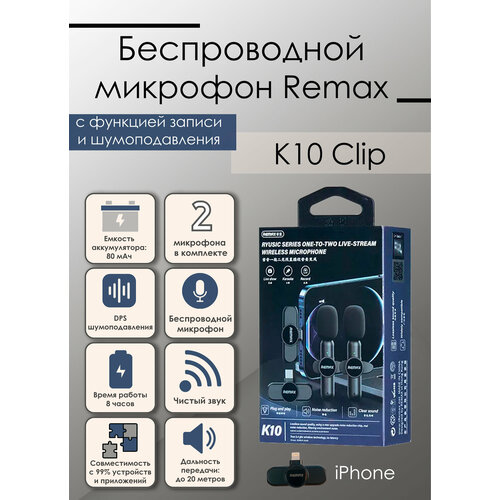 Петличный микрофон беспроводной для интервью и стриминга в соц. сетях Remax K10 Clip для iPH