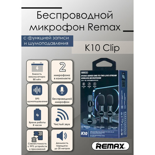 Петличный микрофон беспроводной для интервью и стриминга в соц. сетях Remax K10 Clip