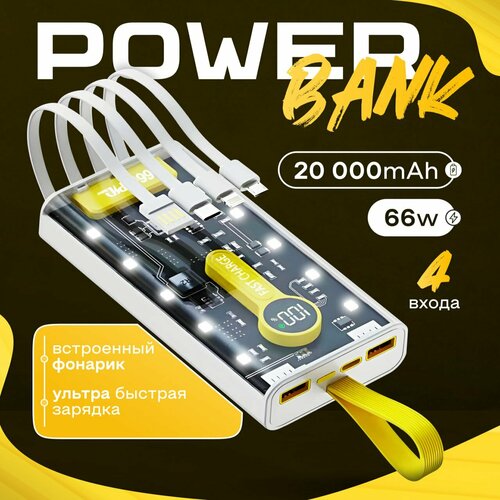 Повербанк для iPhone и Android / Power Bank 20000 Lightning, Type-c, Micro-Usb, USB-A / Пауэрбанк c проводами