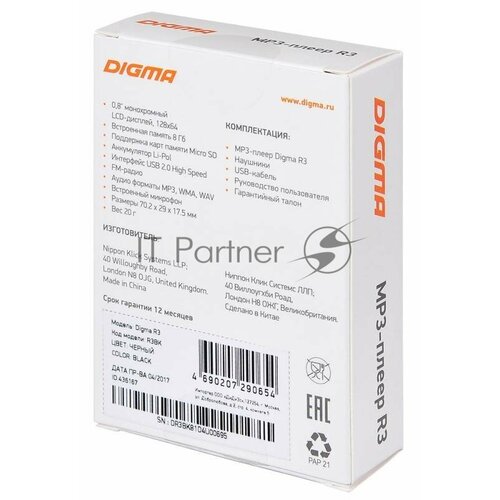 MP3-плеер DIGMA B4 8 ГБ, RU