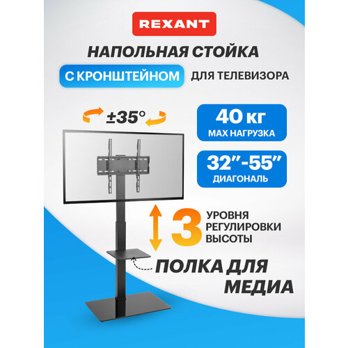 REXANT Напольная стойка с кронштейном для телевизора 32-55 дюймов с полкой PROFI